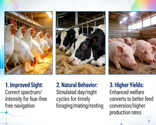 * Cattle: Similar to swine, they respond well to long-day lighting protocols but require specific spectrums to optimize milk yield hormones (IGF-1).