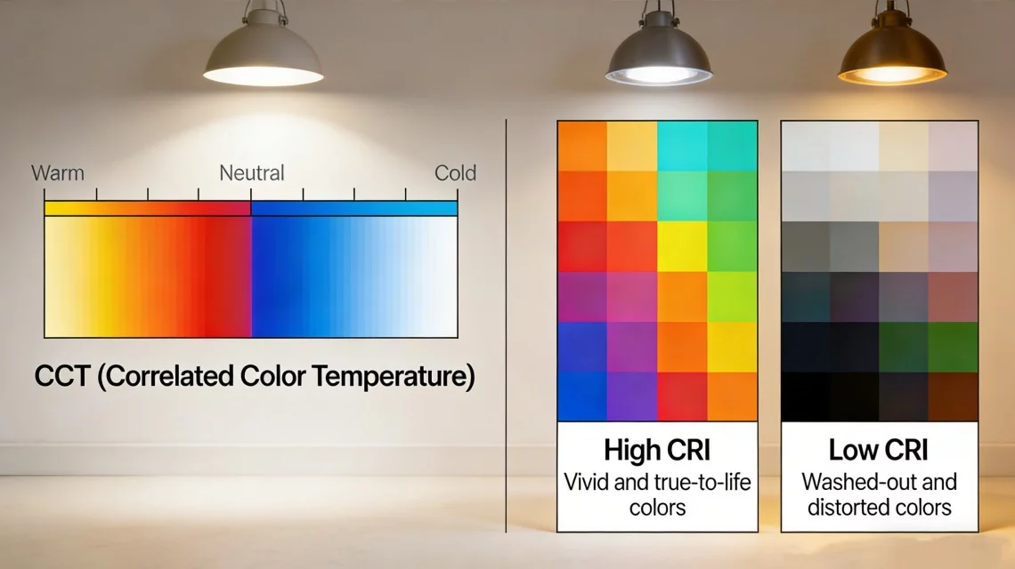 Beyond simple brightness, the quality of light is defined by two critical metrics: Correlated Color Temperature (CCT) and Color Rendering Index (CRI). These determine how light affects biological rhythms and visual clarity.
