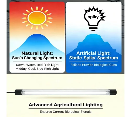 However, standard artificial lights often emit a static, "spiky" spectrum that fails to provide these biological cues.