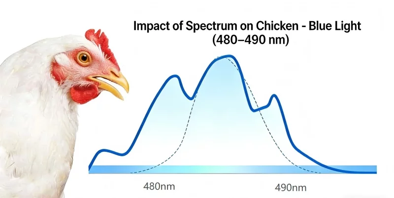 Poultry vision differs fundamentally from human vision. Poultry eyes are sensitive to light within the wavelength range of 350–750 nm, with distinct response peaks in the near-ultraviolet, blue, green, and red spectral bands.