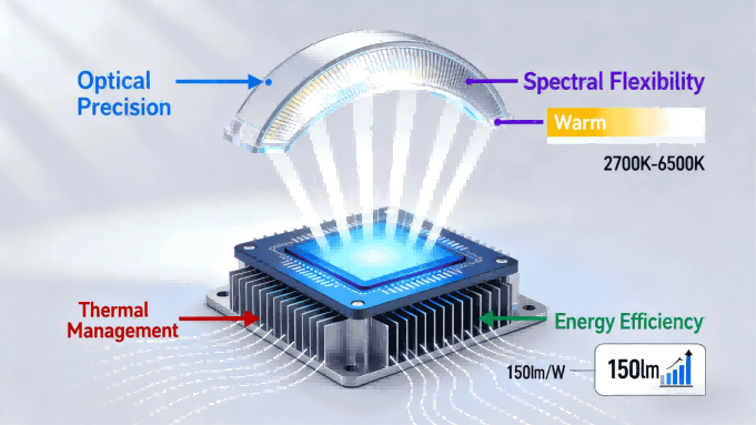 Before evaluating applications and investment decisions, it is critical to understand the core technology that drives outdoor LED flood lights. At their heart lies advanced semiconductor engineering: electrons move across a diode junction, releasing photons in a highly controlled spectrum.