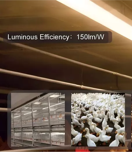 Das T5-LED-Scheunenbeleuchtungssystem bietet eine Lösung für Hühner, um die Eierproduktion zu steigern, die Sterblichkeit zu senken, die Spitzenproduktionszeit zu verlängern und das Tierwohl zu verbessern.