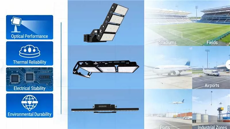 Ceramiclite LED outdoor floodlights are engineered with a focus on optical performance, thermal reliability, stability and environmental durability, ensuring consistent, long-term illumination for demanding outdoor applications such as stadiums, fields, airports, ports, and industrial zones.