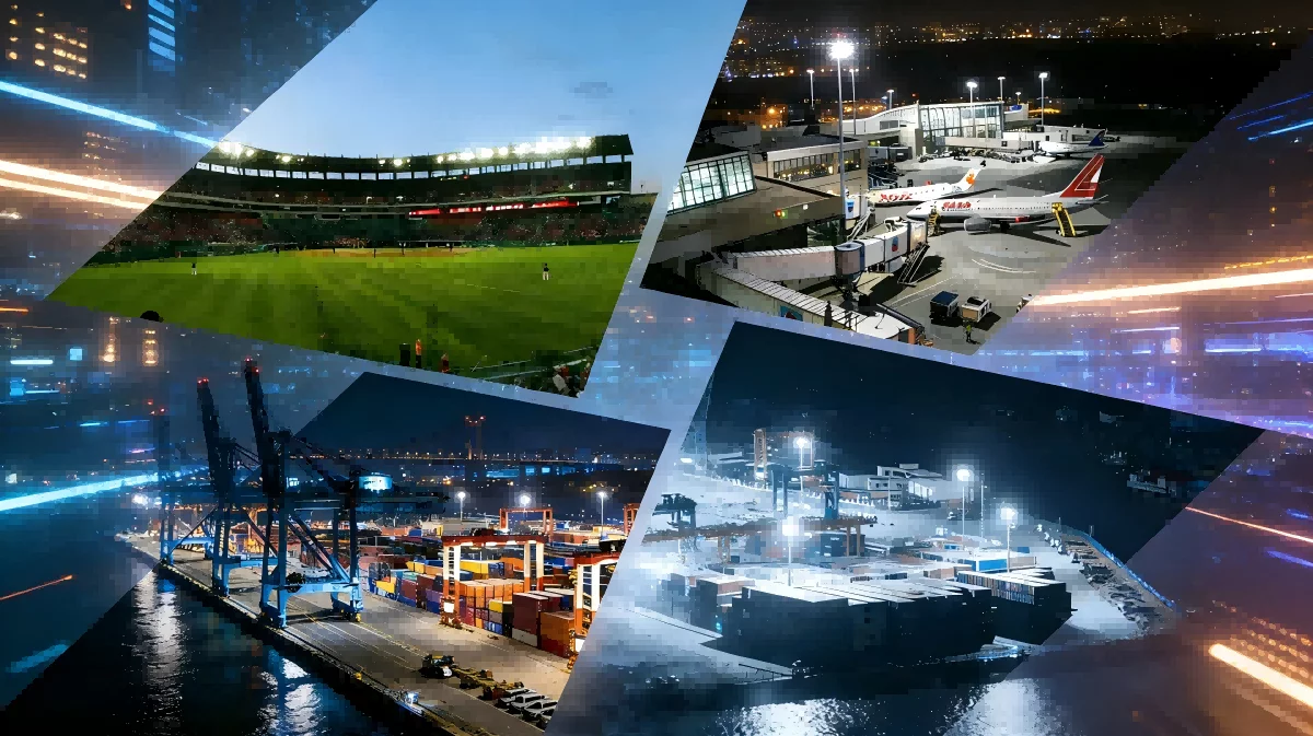 Modern container ports operate 24 hours a day. High mast lighting provides powerful illumination across container yards, loading zones, and shipping lanes, allowing crane operators and ground vehicles to work safely at night.